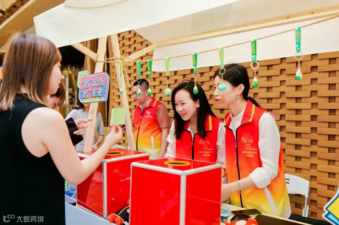 “幸运大转盘”“问答盲盒”“法条速速背”“法律闯三关”等有奖普法问答游戏,接地气、近生活,广信君达法律宣传服务点前迅速排起了长队,吸引了众多群众参与其中。大伙儿在乐中学、在学中乐,反响十分热烈。