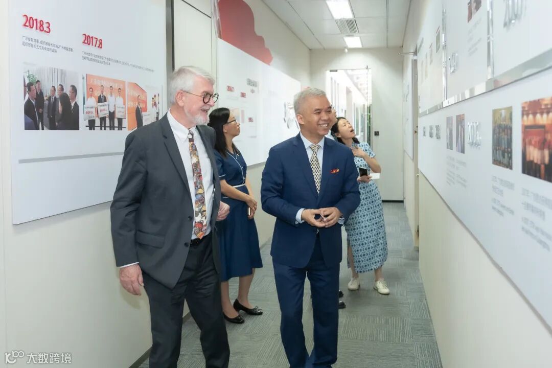 Gowling WLG同仁在本所律师的陪同下,参观本所文化长廊及办公环境,共同观看《奋进:广信君达30年》专题片,了解本所规模化、专业化、国际化、品牌化发展情况。