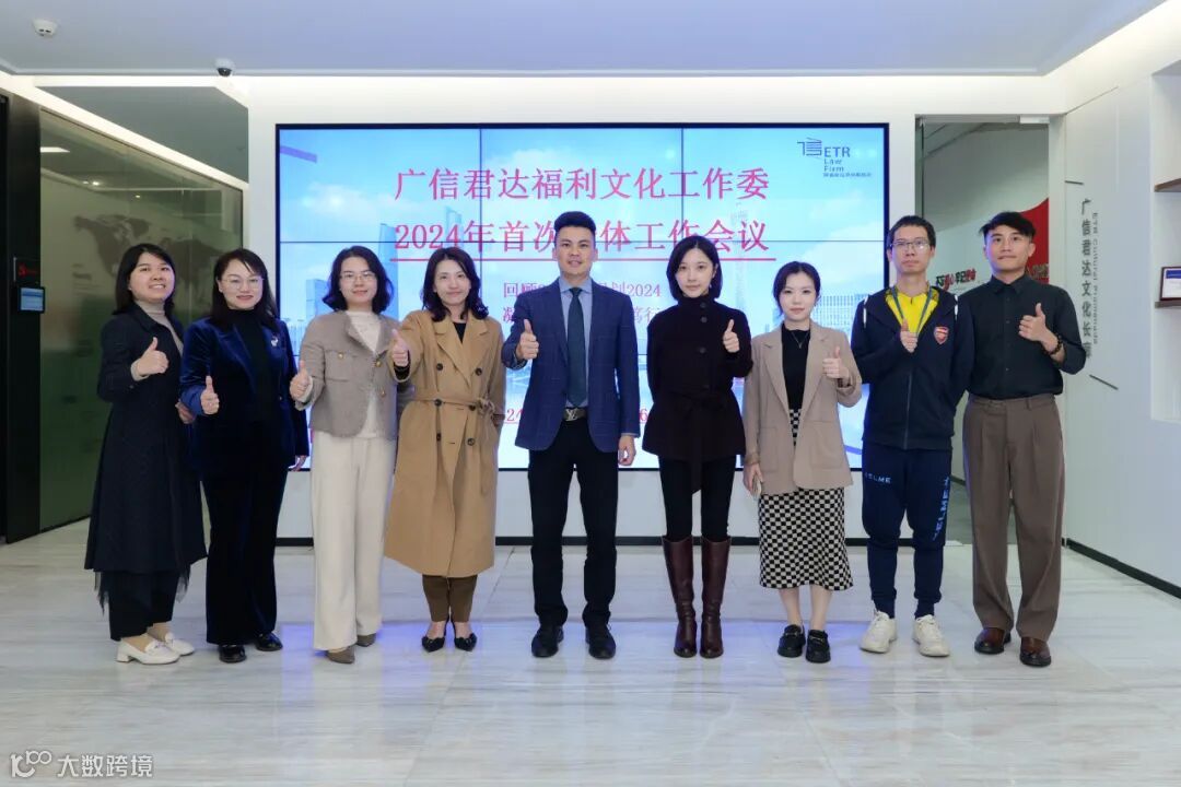 2024年2月23日下午,广信君达律师事务所福利文化工作委员会(简称“福利文化委”)召开2024年首次全体工作会议,福利文化委主任杜晓佳律师、副主任陈希律师、副秘书长胡诗蕙、苏志豪律师及委员李素玲、唐梦莹、林旭明、李珺律师参加会议,会议由福利文化委秘书长李甜甜律师主持。