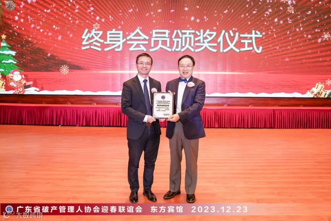 2023年12月23日,广东省破产管理人协会迎春联谊会在广州举行,广东省破产管理人协会会长朱征夫携协会领导,部分地市破产管理人协会领导、战略合作单位、会员单位等共200余人出席会议,其中广信君达律师事务所合伙人肖小俊律师受邀参加,并荣获首个“终身会员”荣誉称号。