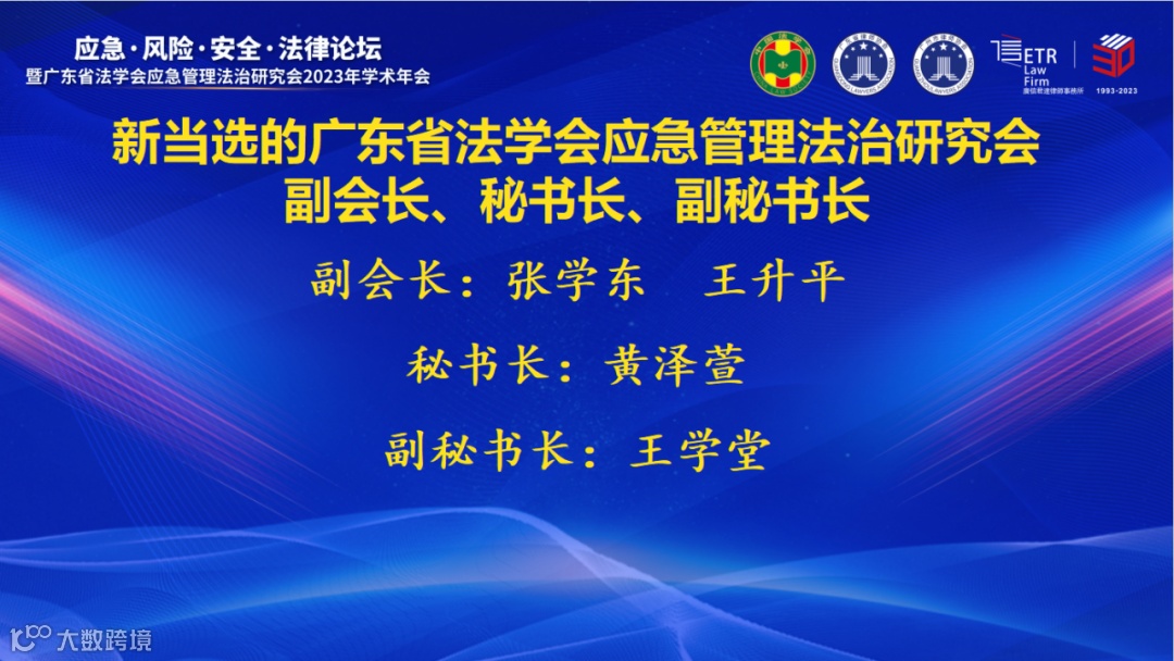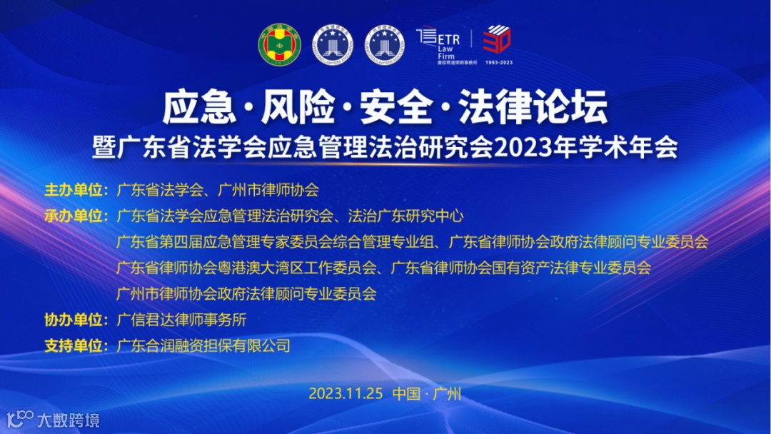 2023年11月25日,“应急·风险·安全·法律论坛”暨广东省法学会应急管理法治研究2023年学术年会,在广信君达律师事务所顺利召开。活动以习近平新时代中国特色社会主义思想为指导,学习领会习近平总书记关于应急管理重要论述,推进应急管理法治现代化建设,为推进高质量发展、法治广东建设建言献策。活动包括主题演讲、圆桌论坛、颁发证书和总结点评等环节,议程丰富、气氛热烈、研讨深入,取得了理论和实务上的火花碰撞与研讨成果。