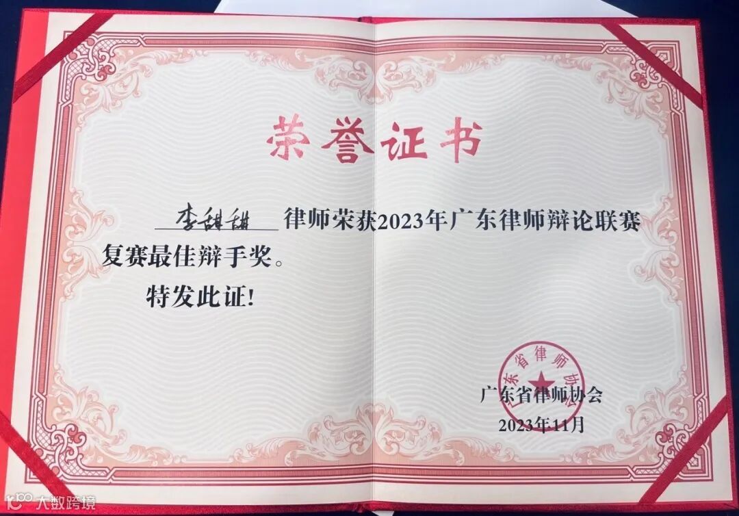 2023年11月26日,由广东省律师协会主办的广东律师辩论联赛复赛在广州大厦成功举办,来自广州、深圳、珠海、汕头、佛山、惠州、阳江、湛江、茂名、潮州、揭阳11个地市,共计12个地市律协代表队参加,前述代表队均为广东三大赛区经过初赛角逐选出的优胜队伍。其中,广信君达律师事务所李甜甜律师、粤港澳大湾区律师吴金旂作为广州市律协第2代表队成员,广信君达(珠海)律师事务所(简称“珠海分所”)徐筠律师作为珠海市律协代表队成员参赛,3位参赛律师所在队伍均以总分第二成功晋级决赛,李甜甜律师再次获得最佳辩手奖。