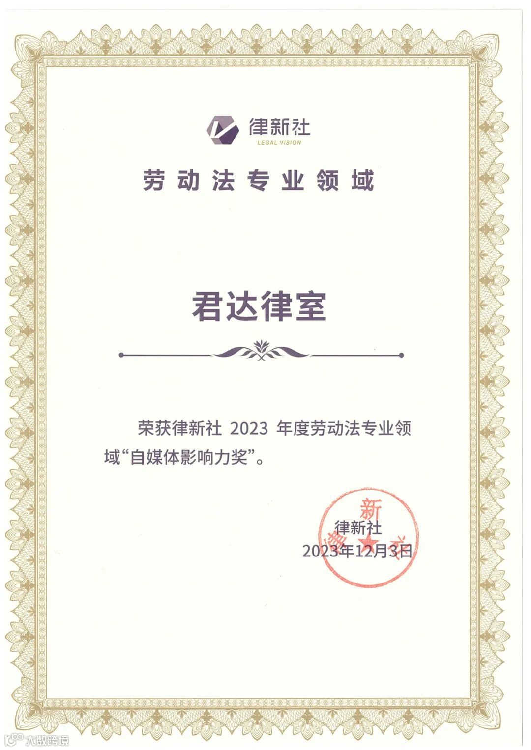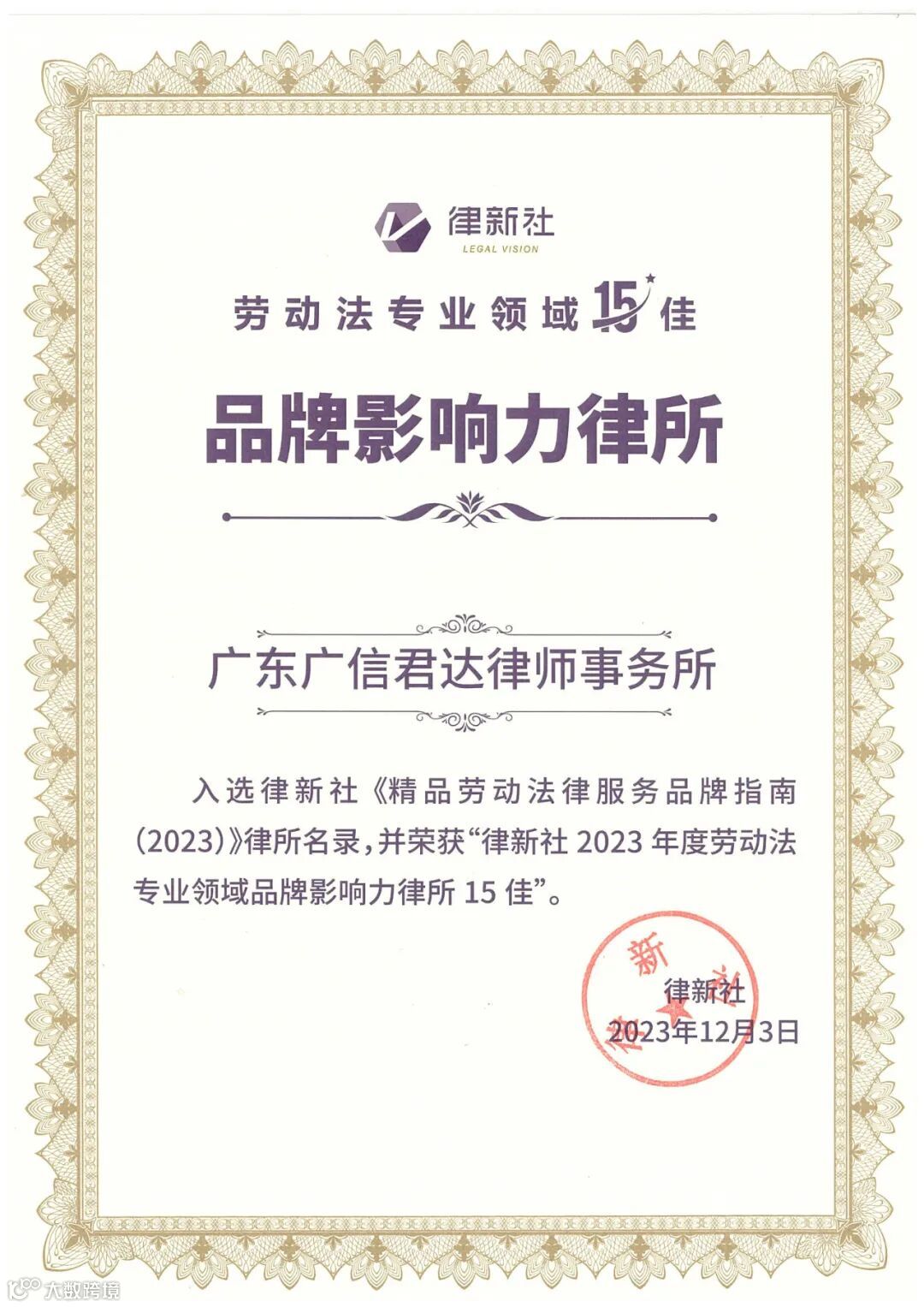 荣誉 | 广信君达荣获律新社劳动法专业领域品牌影响力律所、品牌之星等称号