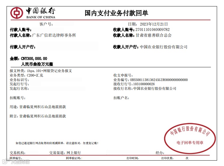 本所持续关注甘肃积石山县地震救灾情况,积极参与抗震救灾援助,用爱心传递律师行业的温暖,为灾区人民提供力所能及的帮助和支持,帮助灾区人民早日渡过难关、重建家园。