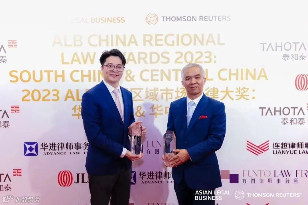 本所荣获《亚洲法律杂志》(ALB)2023中国区域市场法律大奖:华南地区&华中地区合规、争议解决律师事务所两项大奖,本所高级合伙人全朝晖、梁沐周律师受邀出席活动。