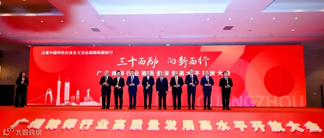 广州市召开律师行业高质量发展高水平开放大会。本所荣获“诚·优秀律师事务所”奖,王晓华律师荣获“献·行业杰出人物”奖,何君尧、慕亚平律师荣获“搏·竞标争先标兵”奖,慕亚平、闪涛律师获评“广州涉外大律师”。