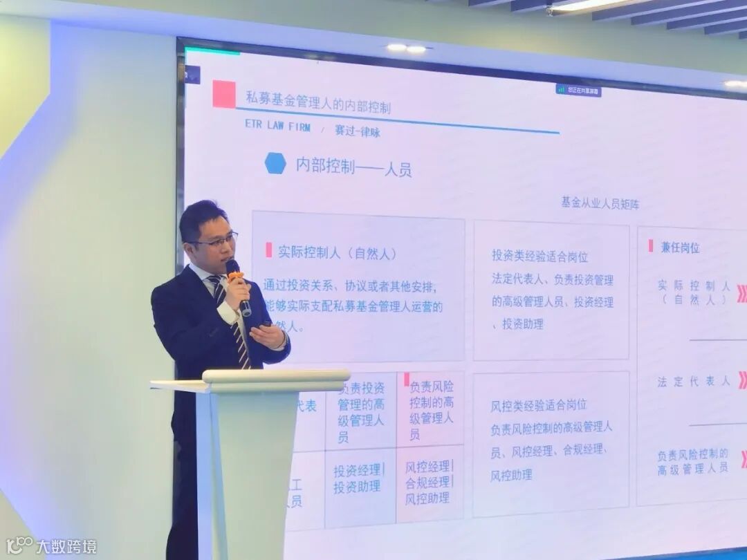 廖艺行律师围绕“新监管形势下基金管理人内部控制及合规”主题,从基金管理人的基本运营要求、内部控制的规范要求、业务拓展与外部合作的禁区三个板块展开分享,并通过可视化的方式解读1725份证监会及各地监管部门的行业重点监管文件及要求,指出目前私募基金行业的监管重点,提示与会人员注意防范相关法律风险。