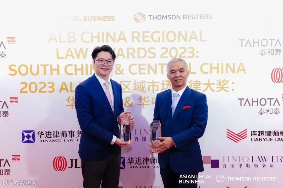 2023年12月8日晚,《亚洲法律杂志》(ALB)2023中国区域市场法律大奖:华南地区&华中地区颁奖典礼在深圳举行,广信君达律师事务所荣获年度华南华中地区合规、争议解决律师事务所两项大奖。广信君达高级合伙人全朝晖、梁沐周律师受邀出席活动。