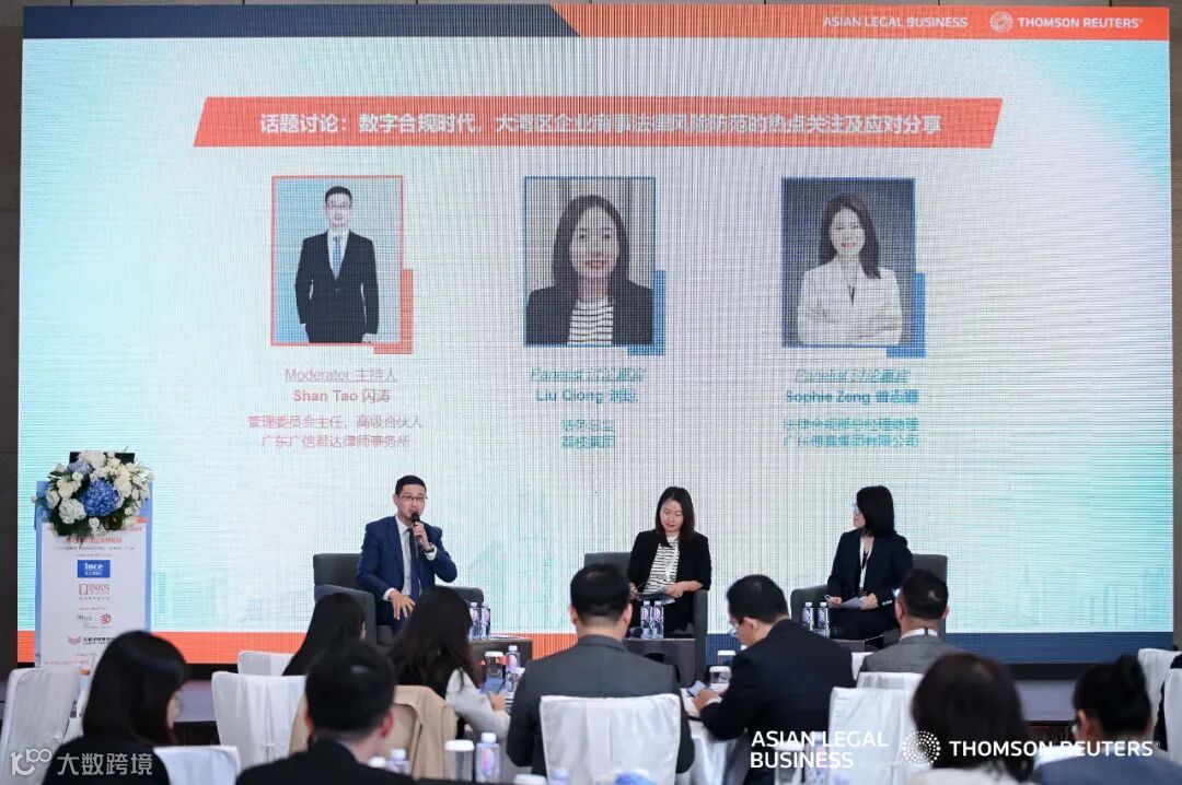 闪涛律师担任“数字合规时代,大湾区企业商事法律风险防范的热点关注及应对分享”话题讨论环节的主持人,与其他两位公司法务嘉宾,就各自行业、公司所面临的“知识产权”“出口管制”等热点合规话题对话交流。