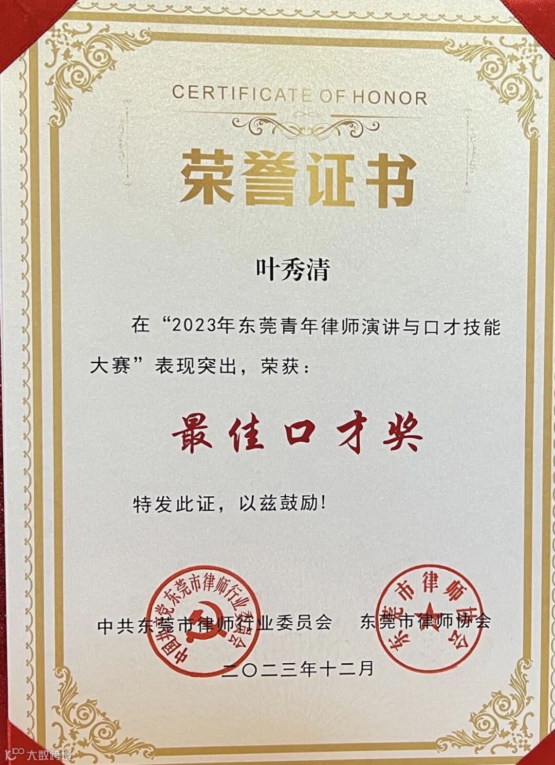 比赛过程中,广信君达(东莞)律师事务所(简称“东莞分所”)叶秀清律师沉着冷静、台风稳健、论理深刻、言之有物,作《践行初心使命,助推法治发展》主题演讲,展示青年律师坚持正确政治方向,以法治助推发展,践行为民理念,依法诚信执业的良好社会形象,获得一致的认可和好评。最终,叶秀清律师突破自我,创下91.72分的佳绩,荣获比赛一等奖,同时获得最佳口才奖!