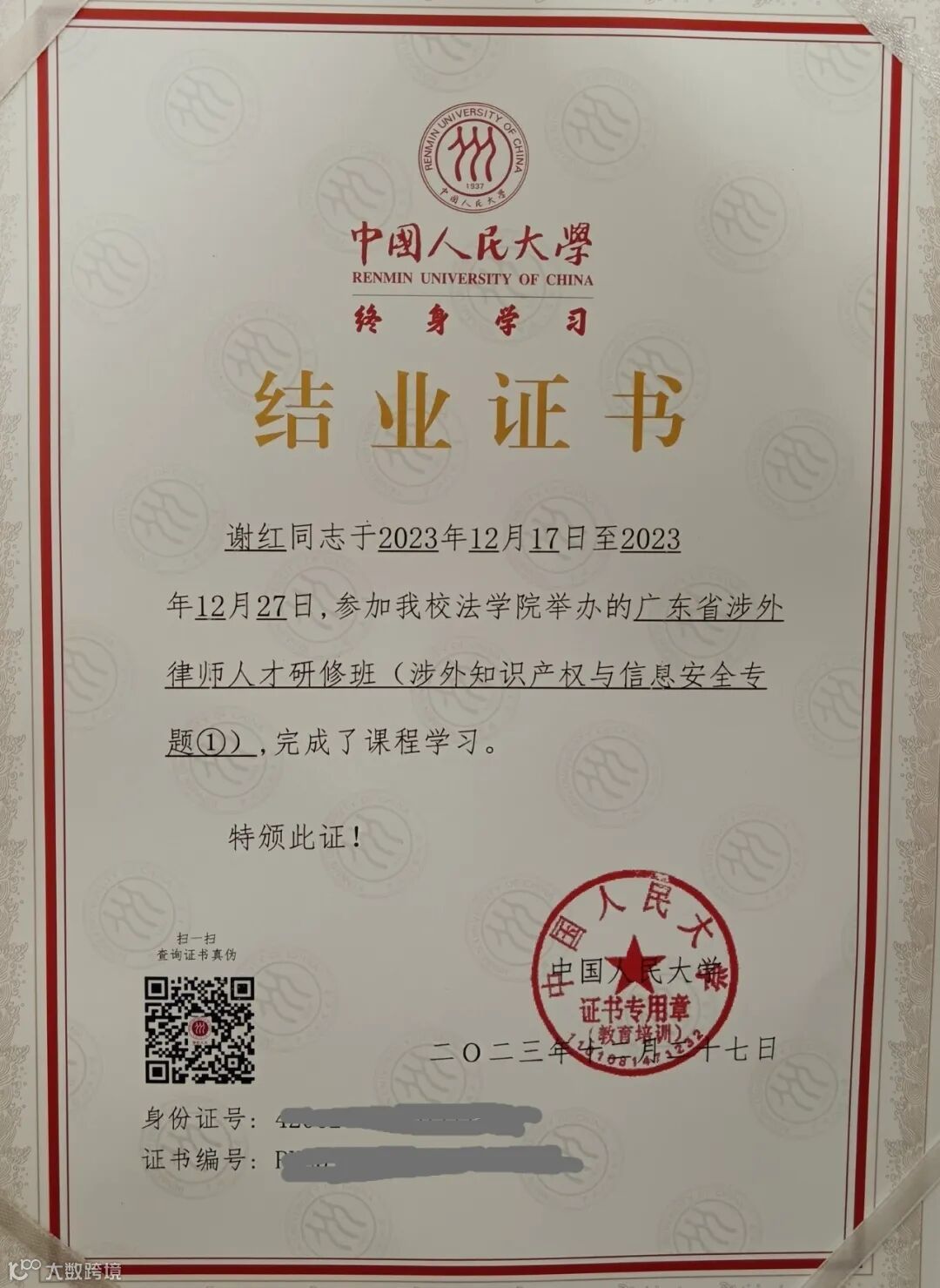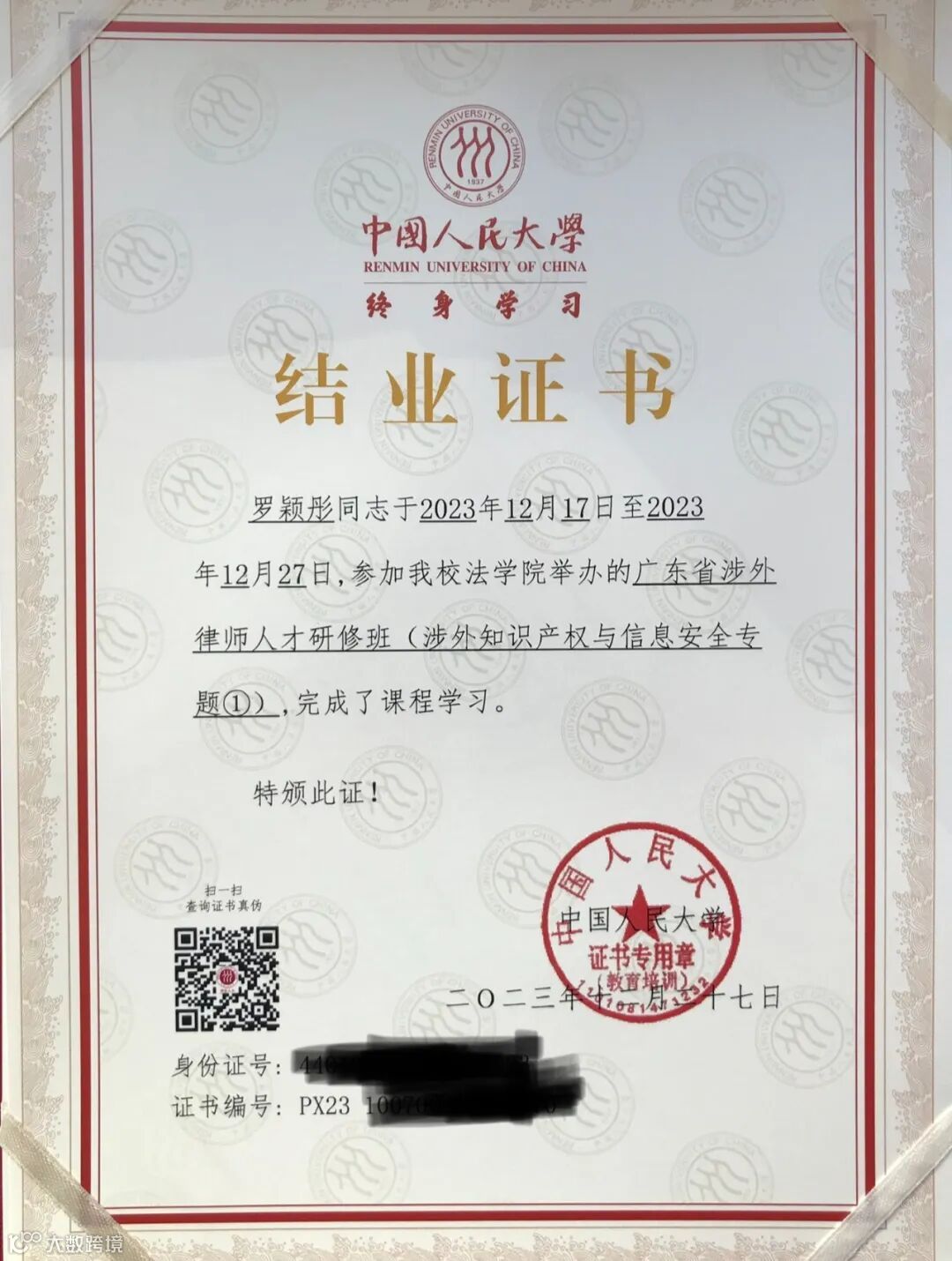 获得国际PMP资格认证,具备助理研究员职称,是企业竞争情报分析师、国家注册IPMS审核员、全国专利信息实务人才、中国杰出知识产权经理人、广东省知识产权专家库专家、广东省地理标志专家库专家、东莞市知识产权纠纷调解委员会调解员。获得武汉理工大学工学学士学位,华南理工大学法律硕士学位,具有理工科和法律的双重教育背景。从事法律工作近20年,曾在国家级科技平台工作10余年。