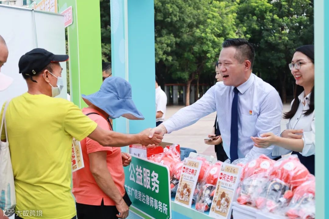 2023年11月9日,市法律援助处联合天河区司法局、天河区法律援助处举办“法有情 援无忧 法律援助惠民生”法援宣传日活动。广信君达管委会联席主任、纪委委员朱滔带领团委委员、党员律师黄丽芬,党员律师梁晓惠、青年律师刘宝萍、实习人员梁竣斌参加活动。他们热情地给在场群众普法宣讲《中华人民共和国民法典》,还设计“知法有礼”普法小问答游戏,围绕婚姻家事、财产继承、权益维护等与群众工作生活密切相关问题进行普法问答,并提供公益法律咨询服务。