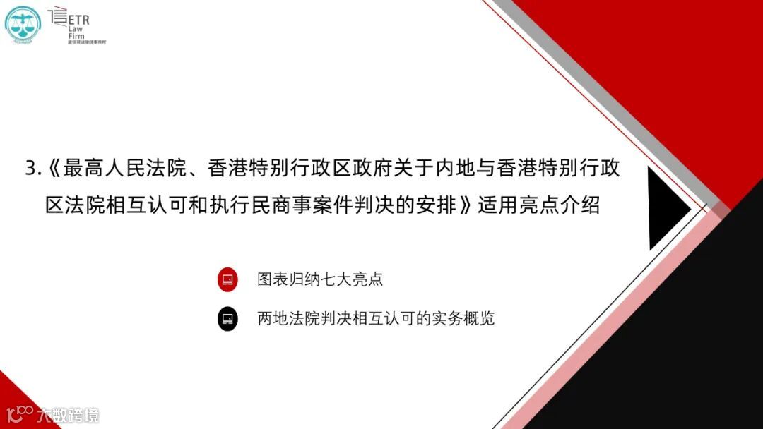 其中,谢捷律师从1999年至今内地与香港特别行政区签署的司法协助安排及实施的时间线及关于两地法院相互认可和执行民商事案件判决的新、旧安排条文对比的角度,简明扼要地讲解了《最高人民法院、香港特别行政区政府关于内地与香港特别行政区法院相互认可和执行民商事案件判决的安排》的适用亮点;在新《公司法》下数据资产出资入股的条件和关注要点以及基于《生成式人工智能服务安全基本要求》视角下,从企业合规制度搭建与完善的角度进行分享,展现了一个崭新而又独特的法律服务方向和机遇。谢律师表示,期待未来广信君达和香港女律师协会能够建立更加紧密的联系,乘着粤港澳大湾区建设的东风,共同拓展涉外法律服务的广度和深度,为海内外客户提供更优质的法律服务。