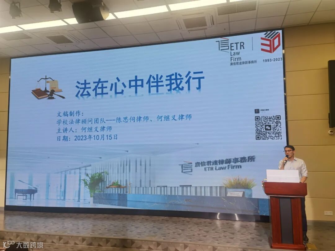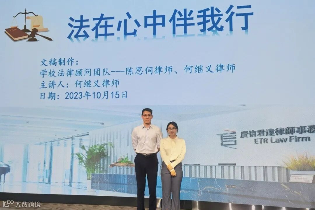 为提高学生法治观念和法律意识,近日,广信君达律师事务所何继义、陈思伺律师应广州幼儿师范高等专科学校(简称“广州幼专”)邀请,为该校2023级学前教育专业的500多位新生开展“法在心中伴我行”普法宣传。