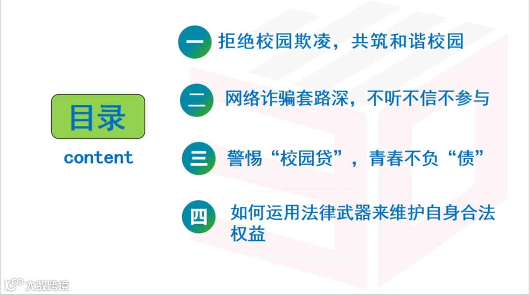 首先,何继义律师就“校园欺凌”这一常见现象,通过法律含义、表现形式、可调整的法律法规、维权方式以及法律责任等方面,引导学生深入认识校园欺凌危害性,拒绝校园欺凌行为。何继义律师还分析了“网络诈骗”常见手法,如实习求职、手机收到不明链接、熟人介绍赚快钱等,提醒学生不要被高薪、高收入蒙蔽双眼,要提高安全防范能力和法律意识,避免成为犯罪团伙的“作案工具”。