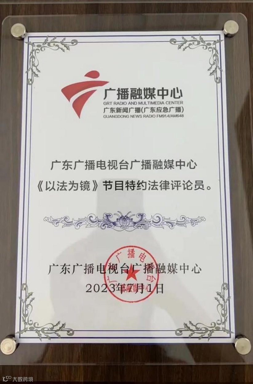 广信君达珠海分所徐筠律师挺进由中央广播电视总台社教节目中心《法律讲堂》栏目组与广东省律师协会联合举办的“2023广东律师风采展示暨央视《法律讲堂》主讲人选拔活动”决赛,荣获“优秀奖”“人气奖”,并被聘为广东广播电视台广播融媒中心《以法为镜》节目特约法律评论员。
