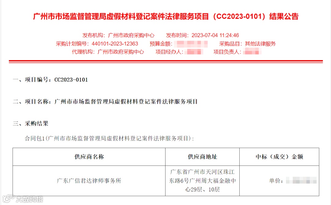 业绩 | 广信君达再次获聘为广州市市监局虚假材料登记案件法律服务项目专项法律顾问
