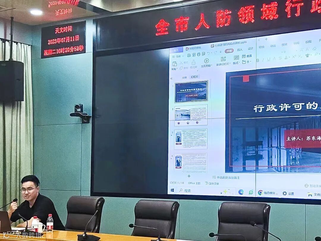 讲座第一环节,李大为律师结合相关案例,分别从“行政许可不得违法增设相对人的义务”“应注意作出行政许可的法定期限”“涉重大利益行政许可应履行听证告知义务”“行政许可区分形式审查和实质审查”等方面进行讲解,归纳了行政许可须符合“职权明确、条件合法、程序正当、审查到位”等基本要求。讲座第二环节,苏东海律师结合自身带领团队经办的典型案例,重点讲解了如何判断行政许可是否属于重复处理、实施行政许可时的谨慎审查义务等需注意的问题,并就人防领域应如何依法履行行政许可职能提出相关要点和建议。