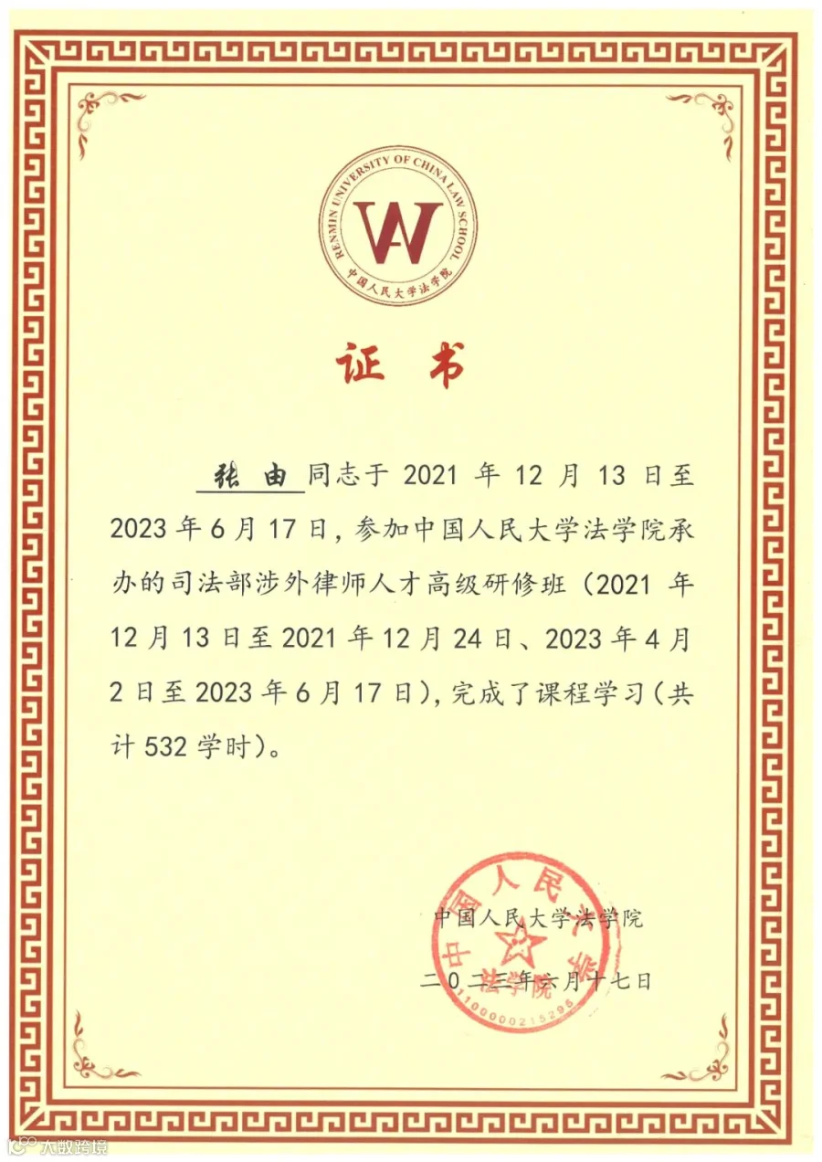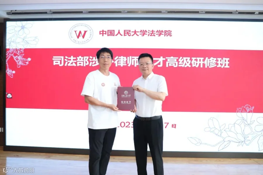近期,为落实习近平总书记加强涉外法治建设的重要指示,加快培养涉外律师人才,由司法部主办,中国人民大学、中国政法大学和对外经济贸易大学承办的涉外律师人才高级研修班在北京开班,全国各省市共300名涉外律师参训。广信君达律师事务所合伙人张由律师参加了77天线下全日制脱产学习,并取得中国人民大学颁发的结业证书。