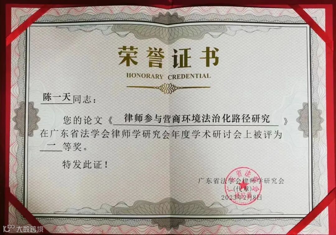 会议第二阶段,研究会召开学术年会并为年度优秀论文进行颁奖。我所陈一天律师撰写的《律师参与营商环境法治化路径研究》论文获评一等奖,并入选2023学术年会论文集。