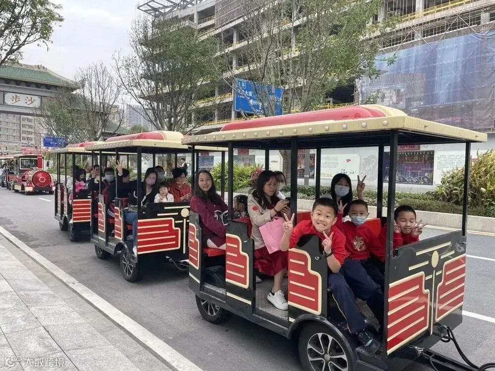大家搭上复古小火车,沿途车览铁铮学校、青少年宫、大脚印公园;在餐厅享用美食,寿司套餐、精美小吃拼盘、西式意粉、蛋糕等美点样样俱全,玩得不亦乐乎。