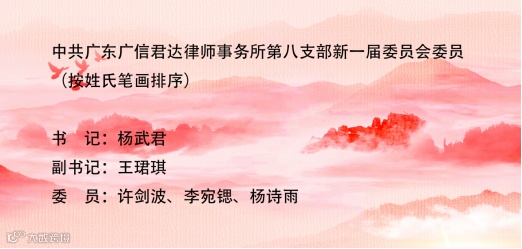 中共广东广信君达律师事务所第八支部委员会换届选举大会在29楼党团会议室顺利召开,选举产生新一届支部委员会。