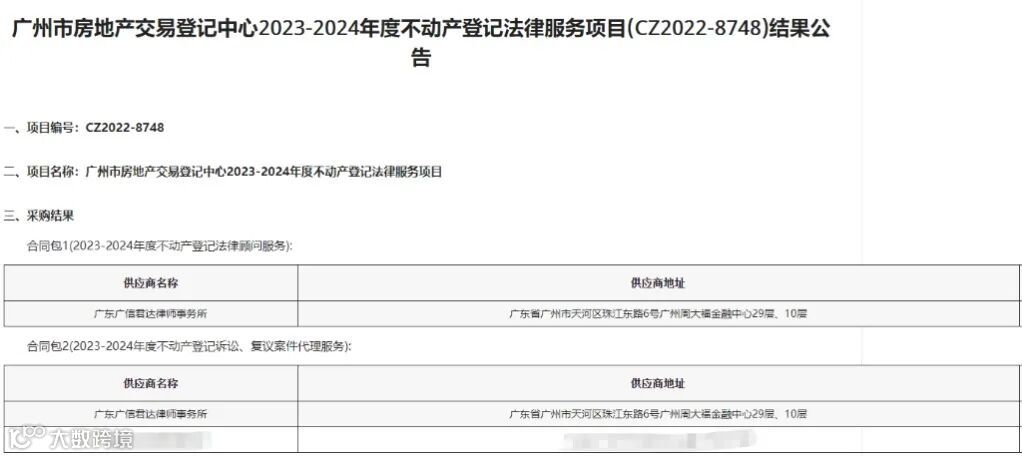 业绩 | 广信君达中标广州市房地产交易登记中心2023-2024年度不动产登记法律服务项目