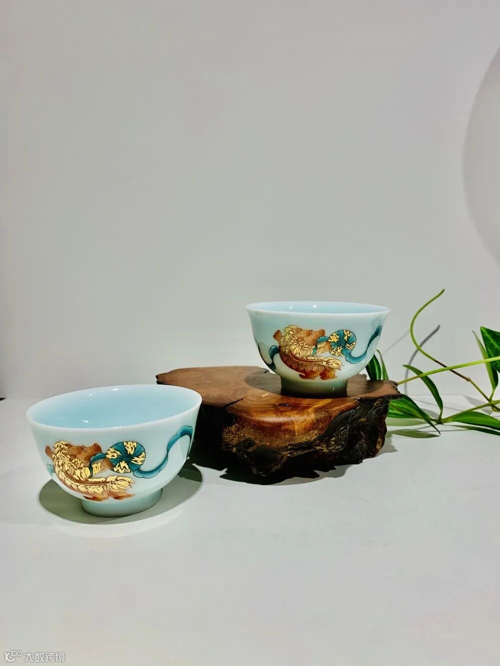 (图4、5:广彩手绘对杯与茶壶,图3、4、5均由谭广辉先生提供)