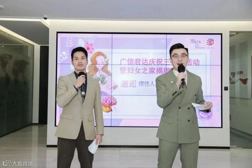 2023年3月7日,广信君达律师事务所举办“邂逅律佳人 最美她风采”庆祝三八妇女节活动暨妇女之家揭牌仪式,200余名律师员工齐聚一堂,共赴浪漫之约。活动由谭朗薇律师主持,广州市天河区妇联主席蔡进、办公室主任刘文珍,广州市律协女律师工作委员会副主任刘艳平出席活动。