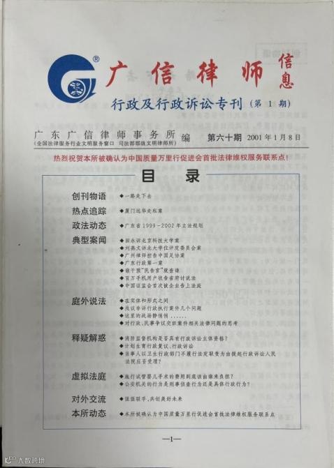 21年前,在我刚刚开始做律师的时候,我参与过广信君达律师事务所内部刊物《广信律师信息》中的其中一期——《行政及行政诉讼专刊》的编写,在该期刊物的“创刊物语”栏目,我写了一篇题目为“一路走下去”的文章。时至今日,每每回忆起求学及律师执业生涯,我总会想起此文。