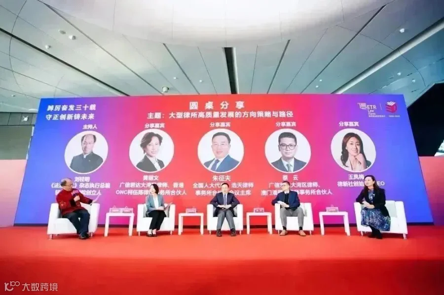 论坛第二环节为圆桌互动,专家学者和来自粤港澳三地的律师围绕“大型律所高质量发展的方向、策略与路径”主题发表意见。