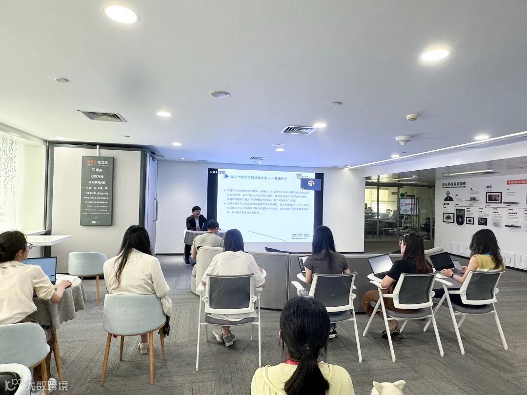 为迎接即将到来的“知识产权日”,2023年4月23日上午,广信君达律师事务所向劲律师、谭凯韵律师应中国电信股份有限公司下属企业天翼爱音乐文化科技有限公司(简称“天翼爱音乐公司”)邀请,以线上线下结合的形式为其企业员工开展“知识产权许可法律风险及防范”法律专题培训,向劲律师、谭凯韵律师、曾昌莲律师出席培训互动环节。