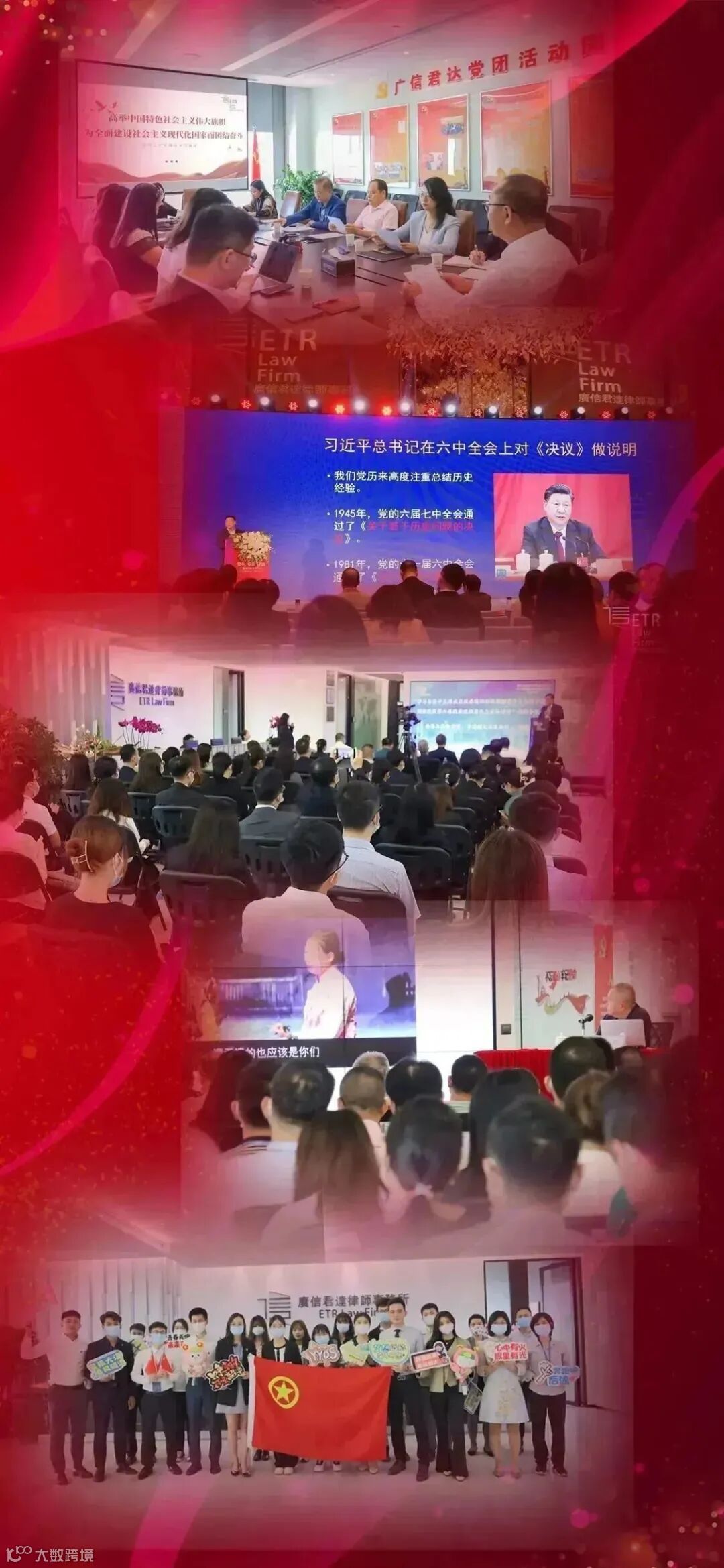 我们迎来了党的二十大。党委多维度推动党史学习教育常态化,持续开展党建品牌项目,获批成立广州市首家律所团委,以崭新姿态喜迎党的二十大召开。党委与事务所通过举办“三会一课”、主题党日、交流研讨等活动,认真学习贯彻党的二十大精神。深入开展习近平法治思想、广东省第十三次党代会精神等学习会,邀请宋儒亮等作“学习习近平总书记重要讲话精神”辅导报告,举办“传承红色基因 弘扬爱国精神”党课,彭湃烈士之孙彭浩的深情讲述引发广州CBD热烈反响,以思想引领进一步激发全所律师员工立足岗位、为民服务。