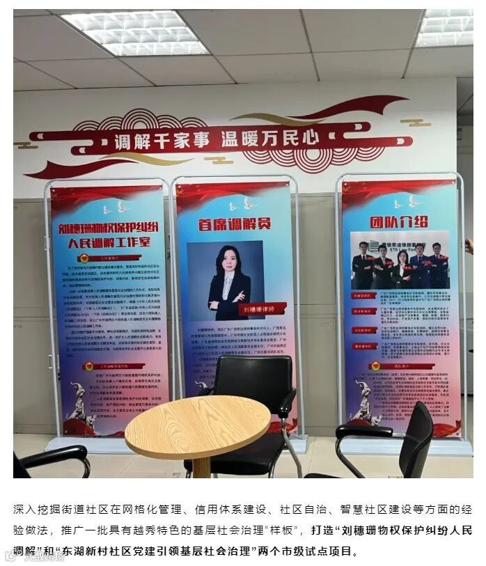 打造刘穗珊人民调解工作室是创新基层社会治理方式的有益探索与实践,能及时把各种矛盾纠纷化解在基层,消除在萌芽状态。2022年全年,刘穗珊人民调解工作室调解案件14宗,成功率达64%,提供法律咨询338次,举办普法讲座57场。仅2022年第二、三季度接访咨询100人次,调解案件9宗,涉及租赁纠纷、侵权纠纷、加装电梯纠纷、相邻权纠纷、新旧物管交接、拆迁纠纷等多个方面。目前,刘穗珊人民调解工作室已成为居民的“解忧室”“贴心人”,其深入挖掘街道社区在网格化管理、信用体系建设、社区自治、智慧社区建设等方面的经验做法,真正实现群众不出社区即可享受优质高效的法律服务,打造最便捷的15分钟法律服务圈,得到了居民群众的高度赞誉。