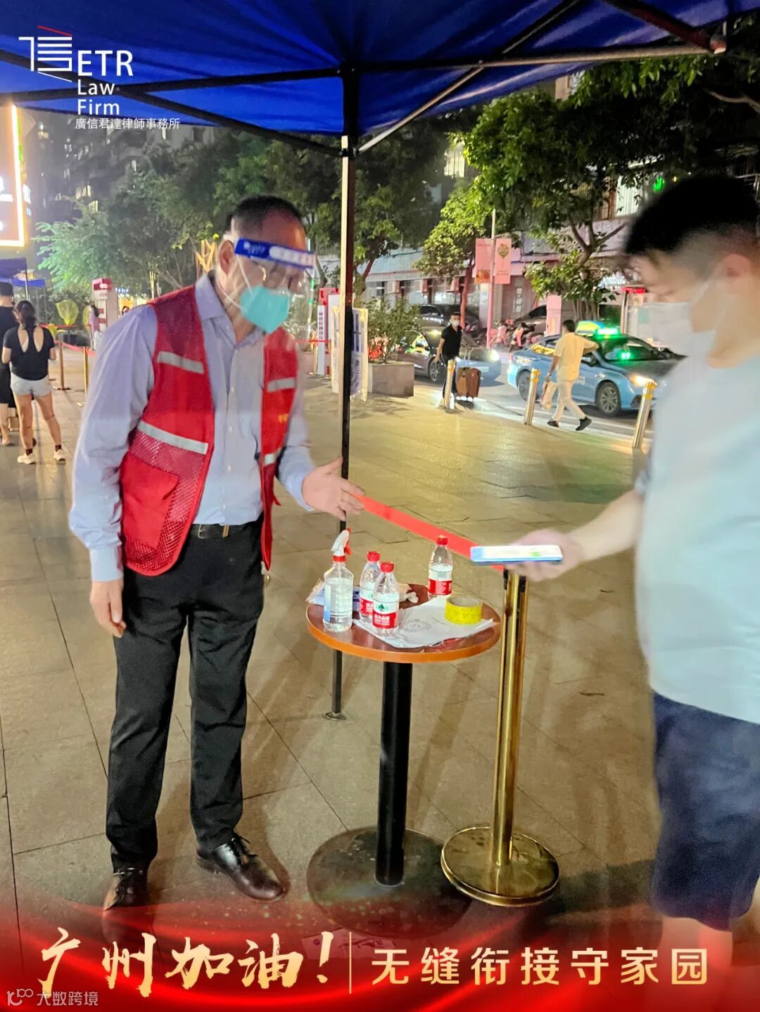 近段时间来广州市疫情严峻,防控任务艰巨、社区人手不足。在接到天河区开展核酸“应检尽检”的消息后,广信君达党委书记、律所主任邓传远律师结束会议行程便急速赶往石牌街参与党员突击队疫情防控志愿服务工作,并动员全所党员积极下沉街道社区参与防疫工作和保障服务,补充基层一线工作力量,携手一线抗疫工作者共同筑牢疫情防控坚固防线。