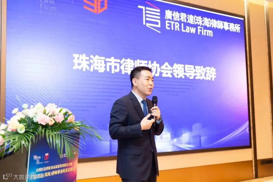 袁原律师对各位嘉宾的到来表示热烈的欢迎和由衷的感谢,表示珠海分所是广信君达响应国家号召,投身粤港澳大湾区建设的重要“桥头堡”。两所融合、乔迁新址后,珠海分所将面临新的机遇和挑战,充分依托总所平台资源和专业优势,不忘初心,踔厉奋进,深耕专业,为大湾区的企业、客户提供更专业、优质的法律服务。