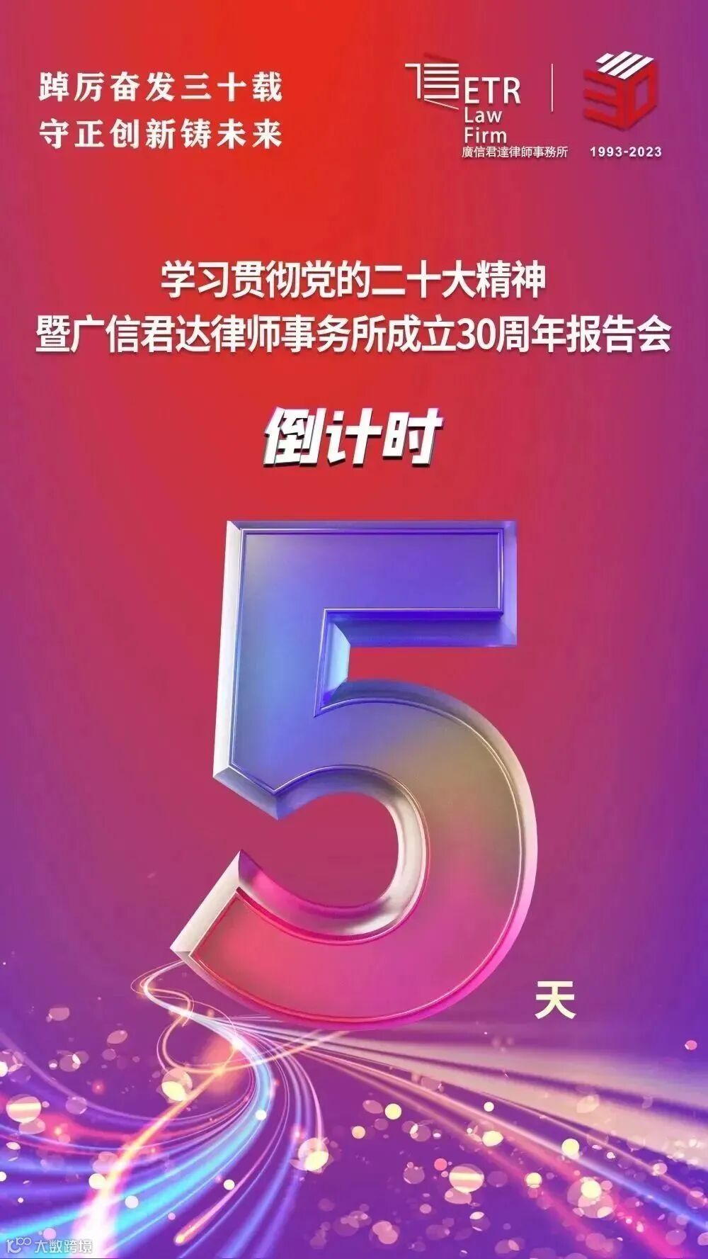 三十年栉风沐雨,自强不息;三十年峥嵘岁月,春华秋实。2023年,广信君达律师事务所迎来成立30周年,定于2月26日举办30周年庆典。