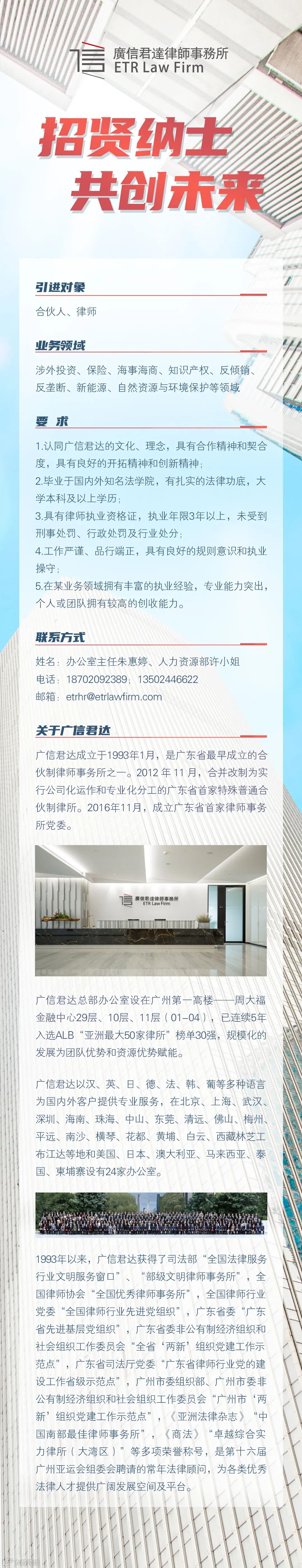 近日,赵芃律师正式晋升为广信君达律师事务所高级合伙人。