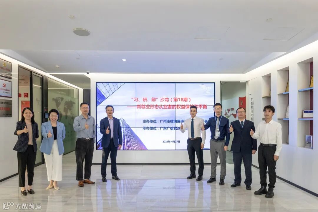 2022年10月27日下午,由广州市律师协会民事法律专业委员会(简称“广州市律协民事委”)主办、广信君达律师事务所承办的“习·研·辨”沙龙第18期——“新就业形态从业者的权益保护与平衡”在本所成功举办。本期沙龙邀请了广州市律协民事委委员、广信君达许杰民律师,广东省律协民事法律专业委员会委员、广州市律协民事委委员、广信君达合伙人黄恒律师,广州市律协民事委委员、文体与福利工作委副主任、广东财经大学法律硕士实践导师、广信君达高级合伙人杜晓佳律师共同担任主讲嘉宾,沙龙活动在律兴APP平台同步直播,数百人观看。