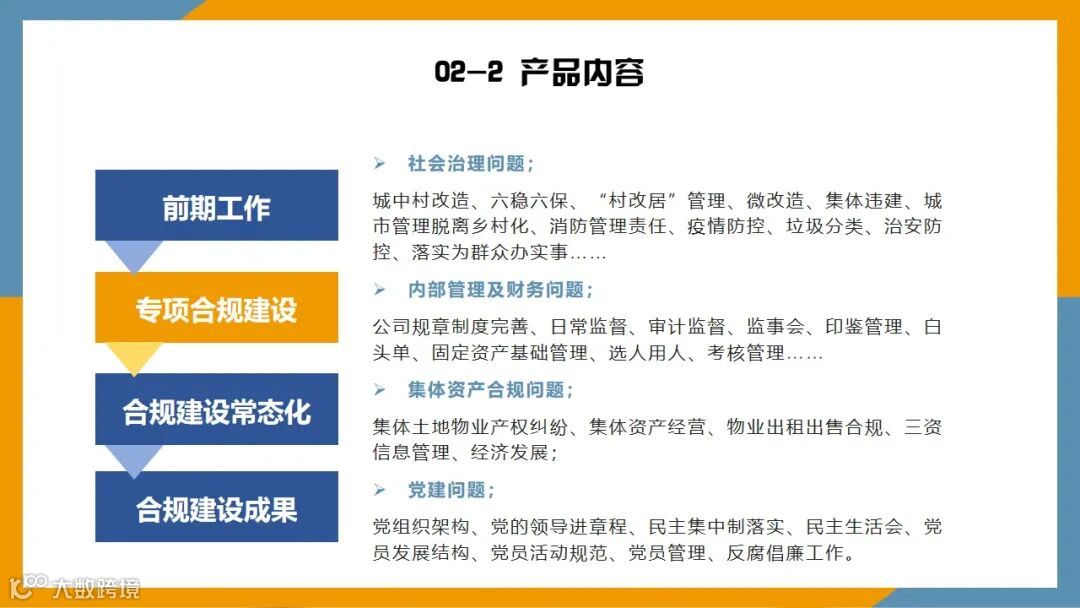 4.汇报及补充阶段:汇报工作,“打好配合”,体现村改制公司合规成效。阶段时长约为14-30日(视工作进度而定)。主动合规,汇报对象为村改制公司、街道办;整改合规,汇报对象为村改制公司、街道办、巡察组。根据汇报的情况进行查缺补漏,并协助村改制公司进行修订、补充。