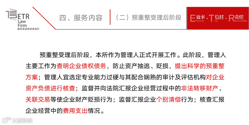本所作为专业的管理人团队将会切实协调好预重整项目各方利益,高效地推进项目进程,现以三个阶段的视角简析本所作为预重整管理人在预重整中的工作: