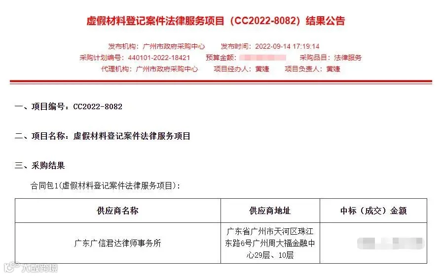 近日,广信君达律师事务所获聘为广州市市场监督管理局(简称“广州市市监局”)虚假材料登记案件专项法律服务项目法律顾问,由本所高级合伙人苏东海律师担任项目负责人,本所君行团队包括梁广涛律师、陈润垣律师、钟嘉林实习律师、陈晓馨律师助理、莫梓院律师助理参与项目。