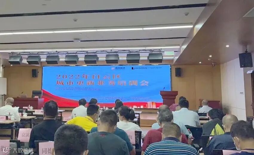 2022年6月29日,为协助区属国企、镇街和村社一线人员准确把握当前城市更新政策导向,提高城市更新业务水平,广州白云产业投资集团有限公司会同广州市规划和自然资源局白云区分局举办2022年白云区城市更新业务培训会,广信君达律师事务所高级合伙人、监事长尤德卫律师,合伙人、城市更新部副部长钟智芬律师,广信君达白云分所负责人谢海傲律师受邀出席会议。