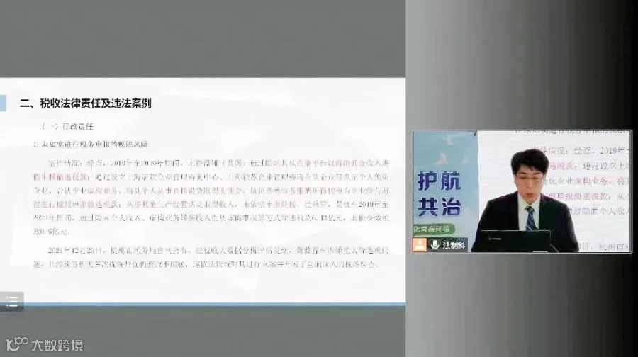 2022年4月13日,由黄埔区税务局、黄埔区司法局、广州市税务局第三稽查局主办,广州开发区科技企业加速器公共法律服务(广信君达)工作站、黄埔“两新”组织党建创新中心(黄埔红创谷)协办的“企业税收政策宣讲直播”于线上腾讯会议平台举行。广信君达律师事务所合伙人张由律师作“企业运营税法风险防范”主题分享。张由律师巧用真实案例为企业代表们介绍了企业运营中的各种税务法律风险和责任,提出企业运营税法风险规避和防范建议,深入简出、生动幽默,深受企业代表们的认可和好评。