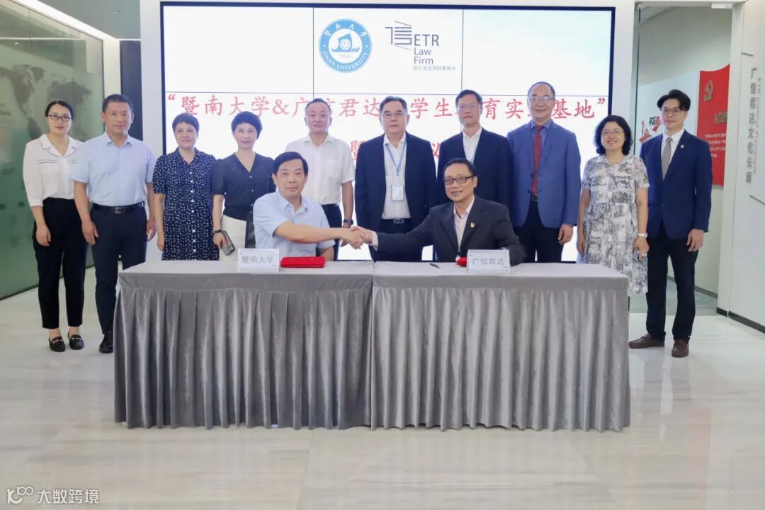 学生就业指导中心主任陈晓明主任、本所管委会主任苏东海律师分别代表暨南大学、广信君达签订了《暨南大学大学生教育实践基地项目合作框架协议书》。