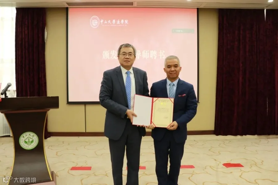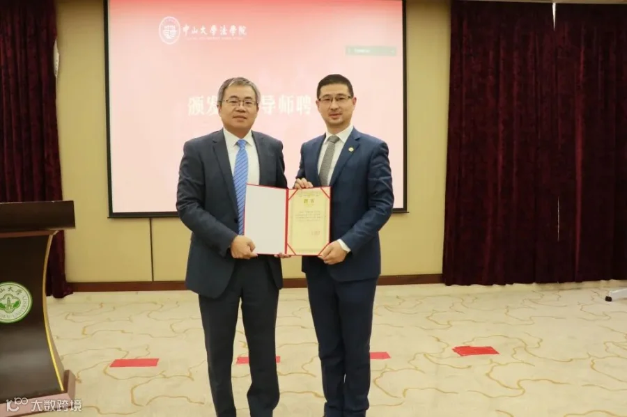 中山大学法学院院长张亮教授为我所部分校外导师颁发聘书