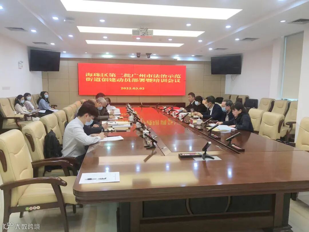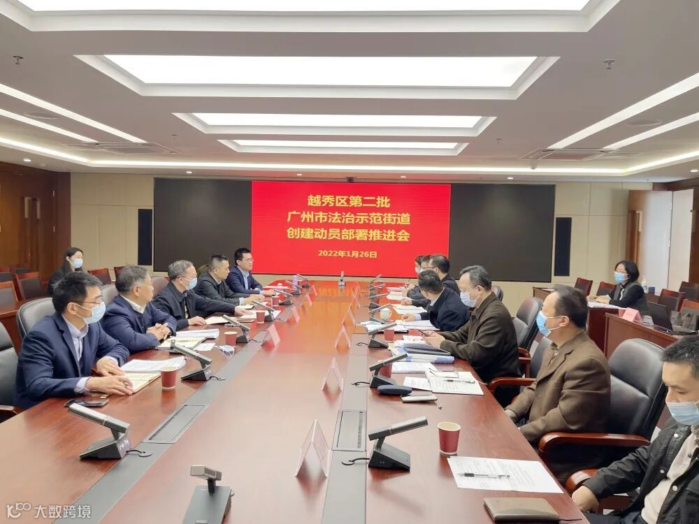 2022年1月19日至3月2日,在市委依法治市办统筹下,花都区、黄埔区、增城区、从化区、越秀区、白云区、南沙区、番禺区、天河区、荔湾区、海珠区11个市辖区先后召开了第二批广州市法治示范镇街创建动员部署暨座谈交流会,市委依法治市办秘书处、各区区委依法治区办、首批示范镇街、第二批创建镇街领导等出席会议,运筹团队也作为专家团队与会并作指导发言和培训交流。