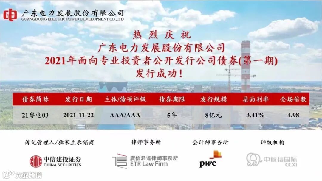 2021年9月28日,中国证券监督管理委员会(简称“中国证监会”)出具《关于同意广东电力发展股份有限公司面向专业投资者公开发行公司债券注册的批复》(证监许可〔2021〕3142号),同意广东电力发展股份有限公司(简称“粤电力”)注册发行不超过人民币100亿元的“储架式”公司债券。