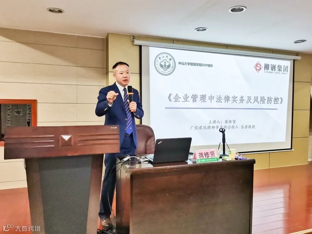 本所合伙人蒋修贤律师参加广西柳州钢铁集团有限公司“柳钢集团优秀年轻干部(2021年)培训班”项目,为优秀青年干部开展企业管理中的法律实务及风险防控专题培训。