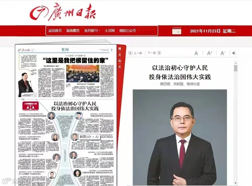 广州市司法局、广州市律师协会联合推出“人民律师为人民”报道,以“以法治初心守护人民 投身依法治国伟大实践”为题刊登在广州日报,解读广州律师的优秀代表、全国优秀律师的成长历程,本所高级合伙人王晓华主任在列。